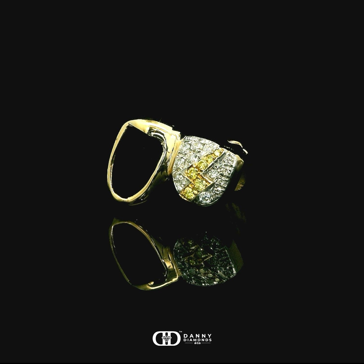 Make your grillz stand out with our signature DD & CO Bespoke Diamond Grillz, crafted for those who move with bold style and elite shine. This Lightning Bolt Yellow & White Diamond 2-Tooth Grillz design brings together a striking mix of natural fancy intense yellow diamonds and colorless white diamonds, handset for maximum brilliance.