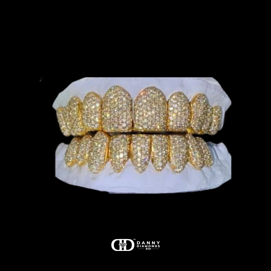 Create your own personalized handcrafted grill custom fit for you. Each is tooth individually handset with gold and natural diamonds available in SI, VS, VVS quality.